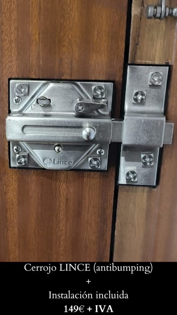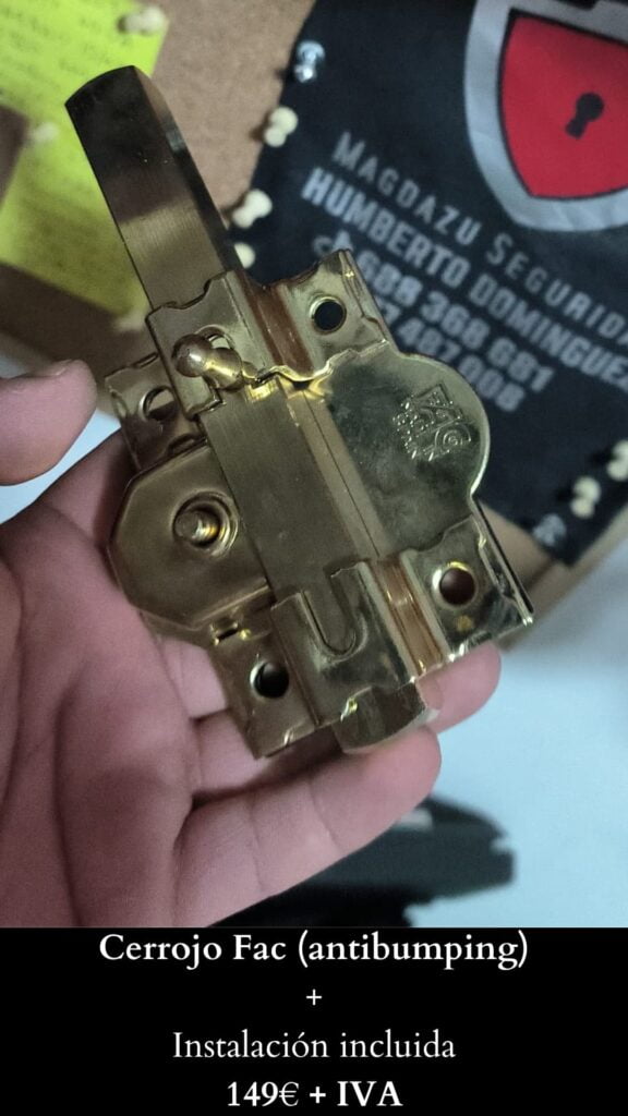 Instalación + Cerrojo (todo incluido)Cerrojo FAC (antibumping): 149€ + IVA.